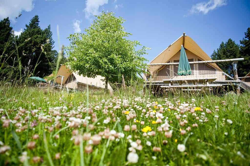 Camping Huttopia Font-Romeu in Font-Romeu-Odeillo-Via op 1800 meter hoogte.